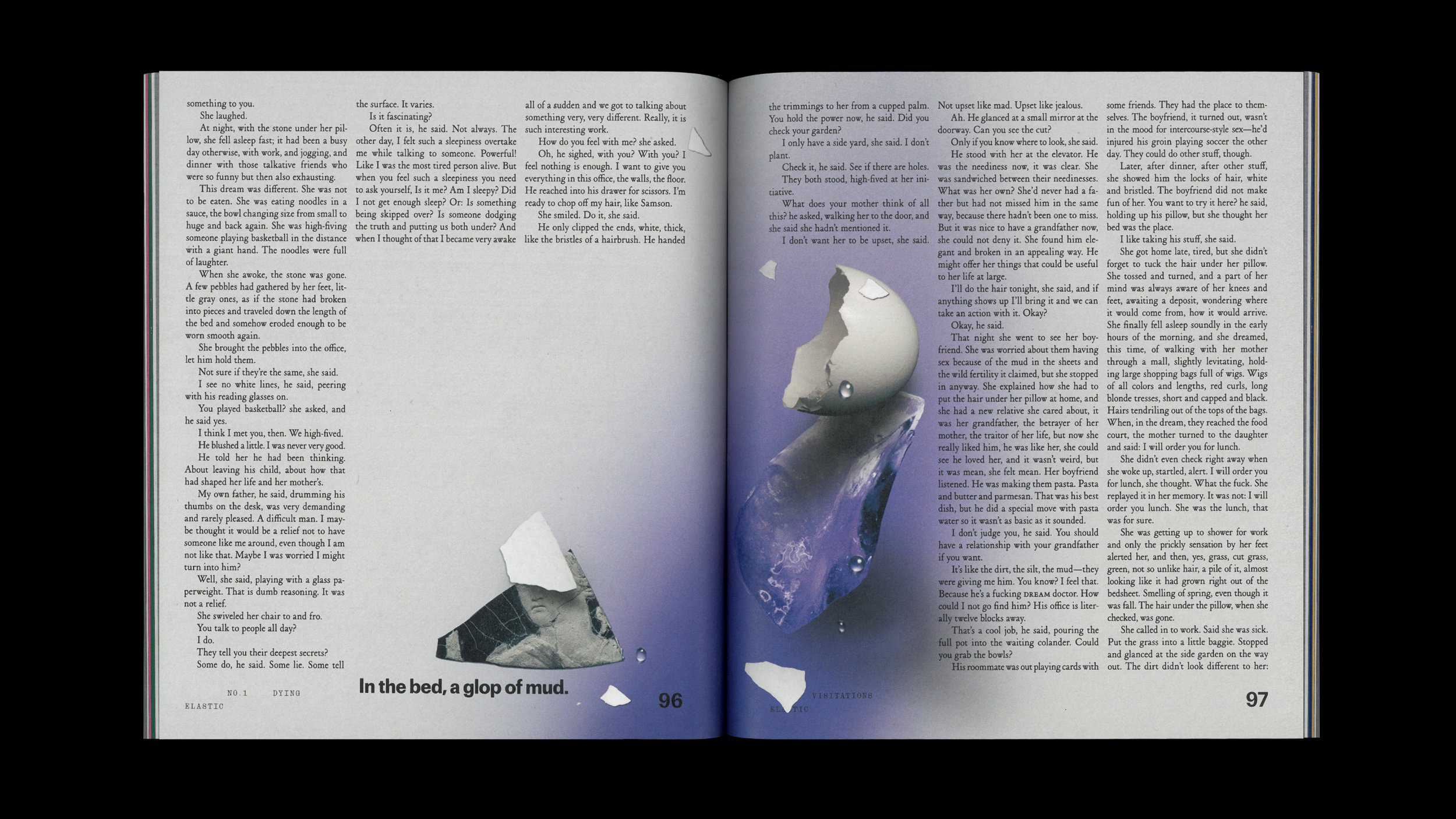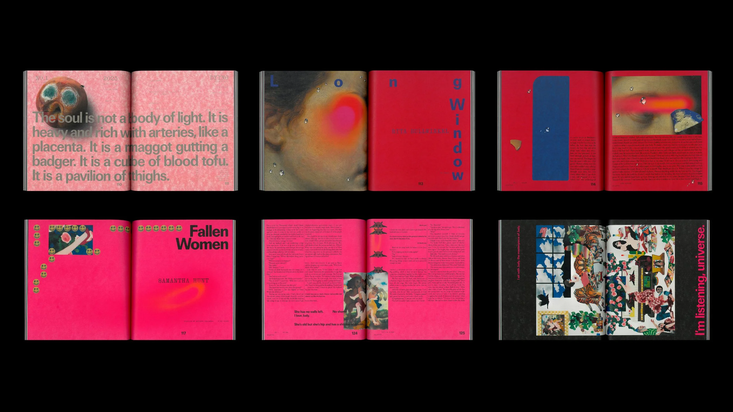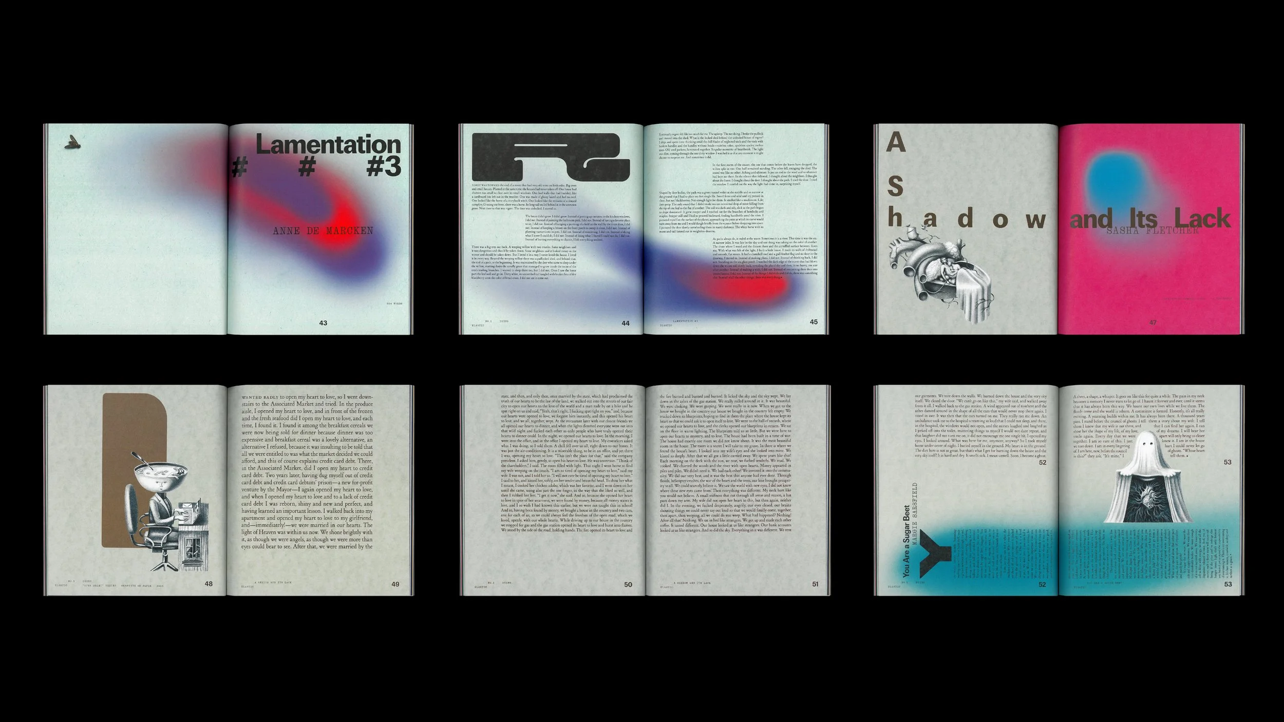 Creative direction and editorial design aimed to create a bizarre experience in the hand and the eye: scans of paper reprinted as faux backgrounds, hand-painted photo collages cosplaying as digital renders paired with a formal, minimalist typographic palette.