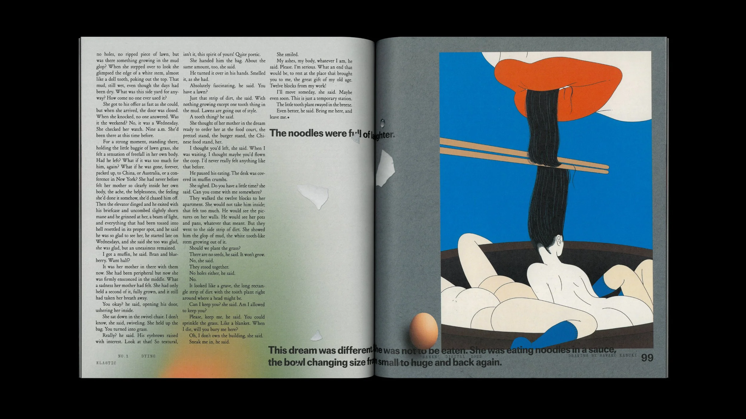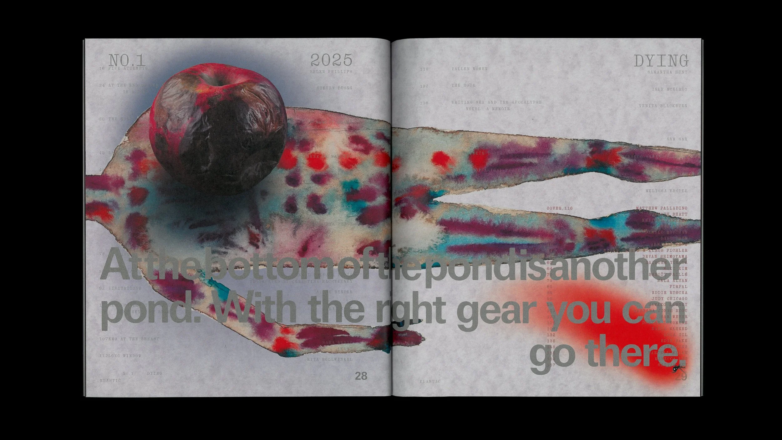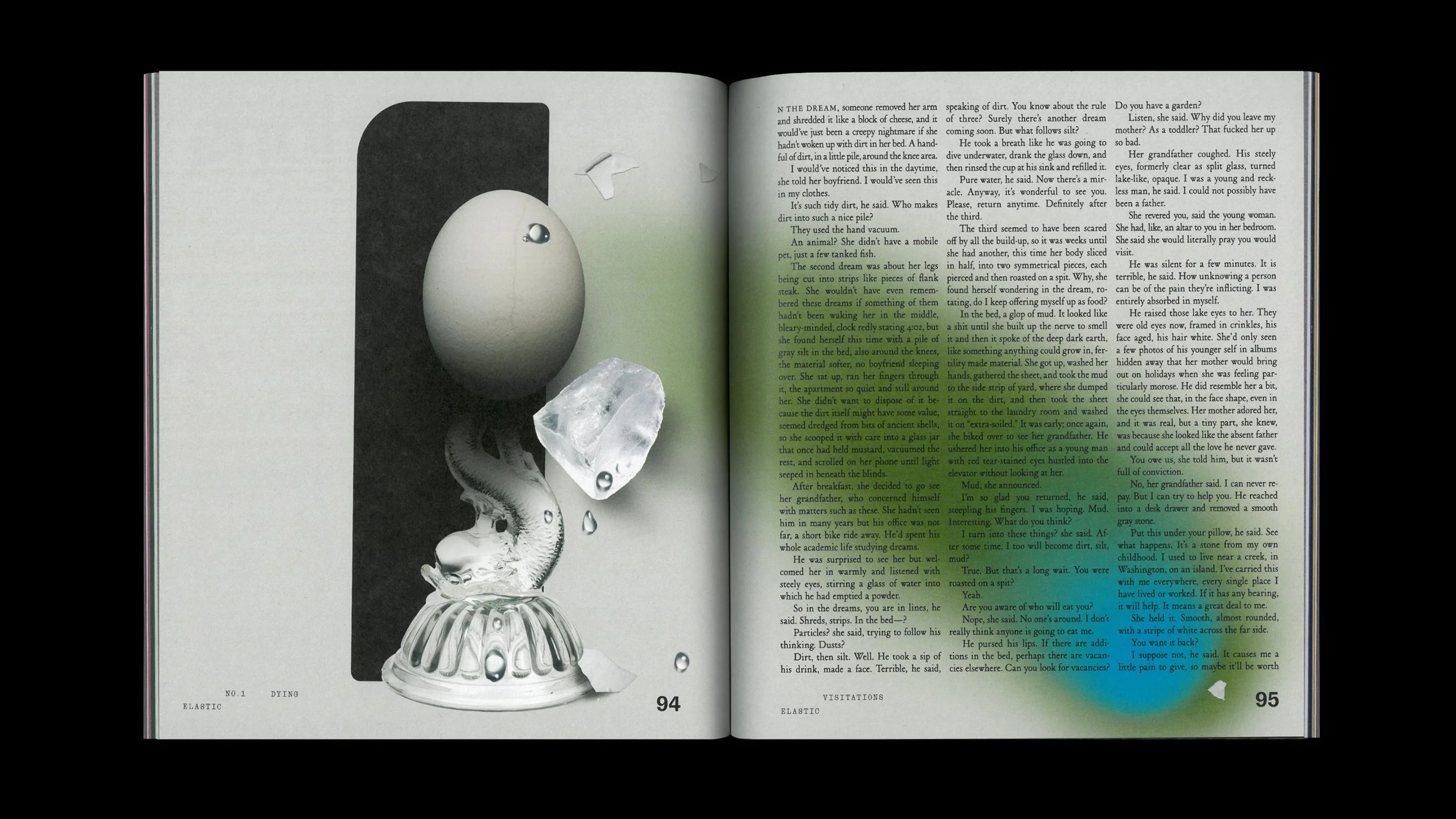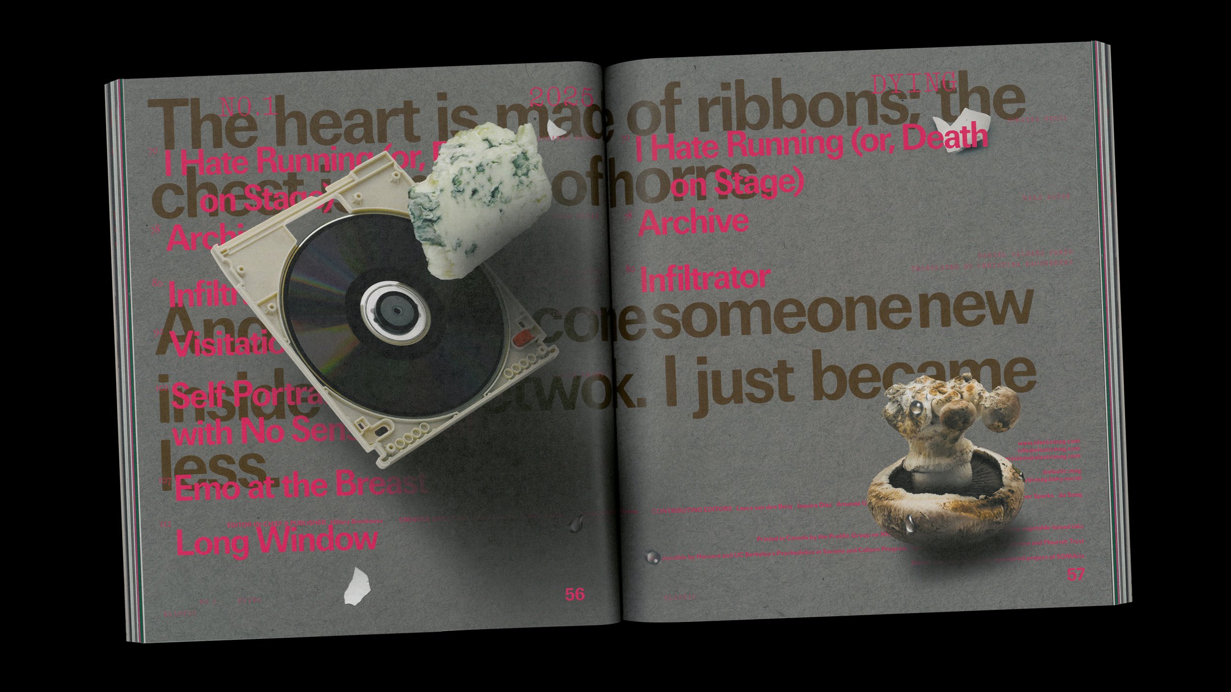 Creative direction and editorial design aimed to create a bizarre experience in the hand and the eye: scans of paper reprinted as faux backgrounds, hand-painted photo collages cosplaying as digital renders paired with a formal, minimalist typographic palette.