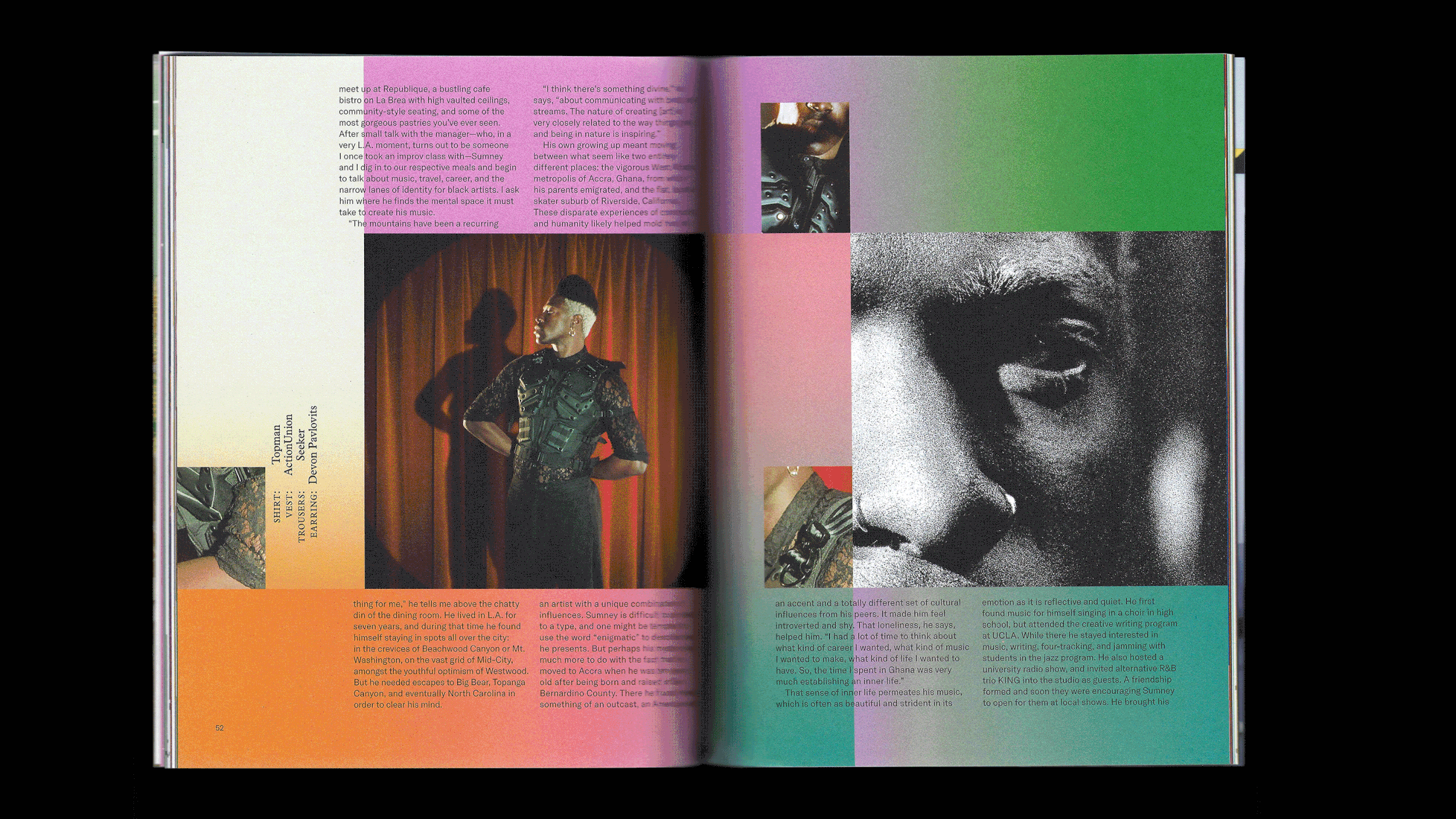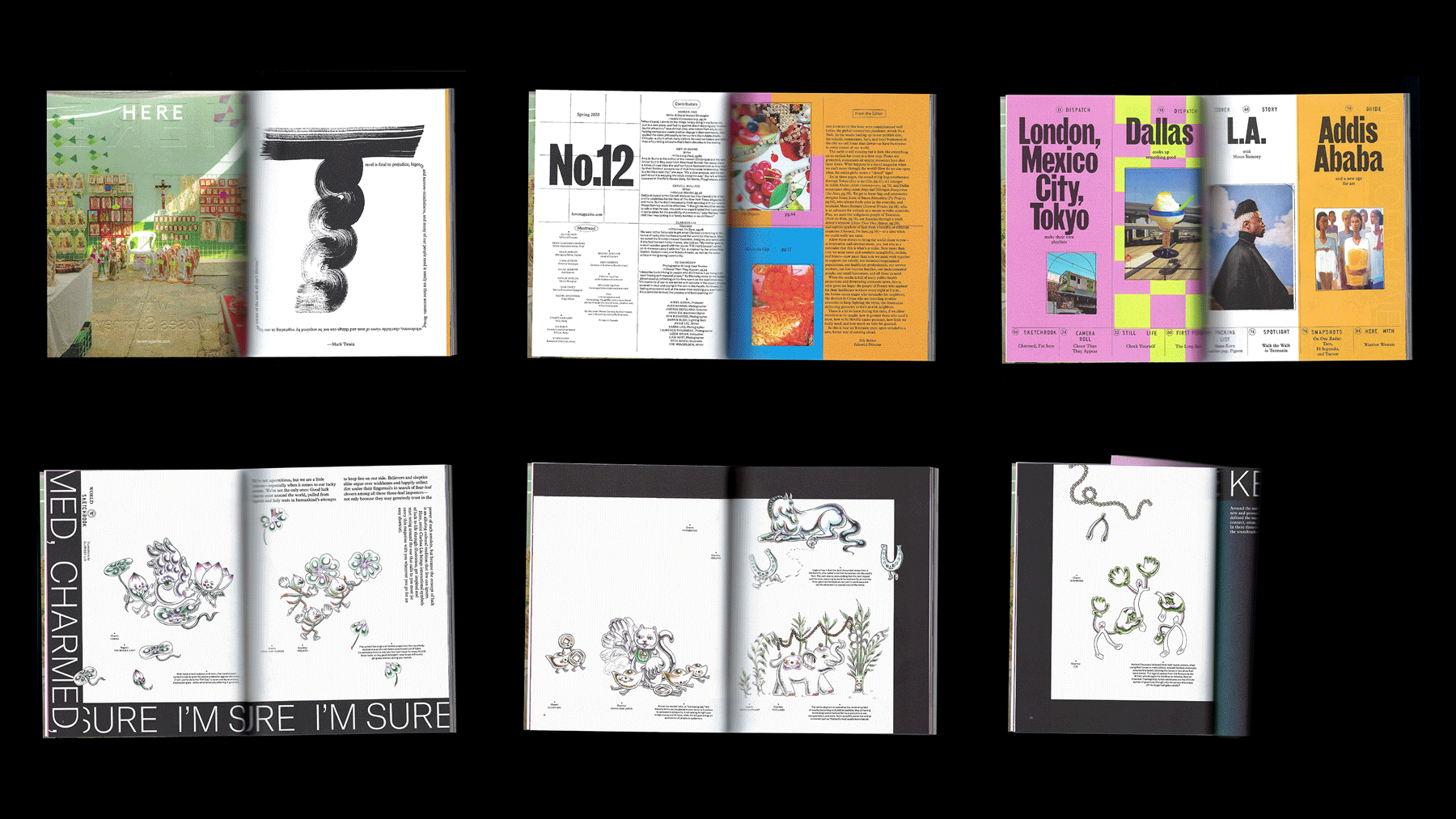 Musician Moses Sumney believes in the power of solitude; the restaurateurs of Dallas redefine “fine dining;” the designer behind Susan Alexandra packs for woman’s best friend; tune in to the soundtracks of London, Tokyo, and Mexico City; what road trips taught writer Amy Jo Burns about her interracial marriage; a new age for art in Addis Ababa, Ethiopia; life in the slow lane with photographer turned-long-haul-trucker Ry Shorosky; and illustrator Clarissa Liu explores symbols of luck around the world.