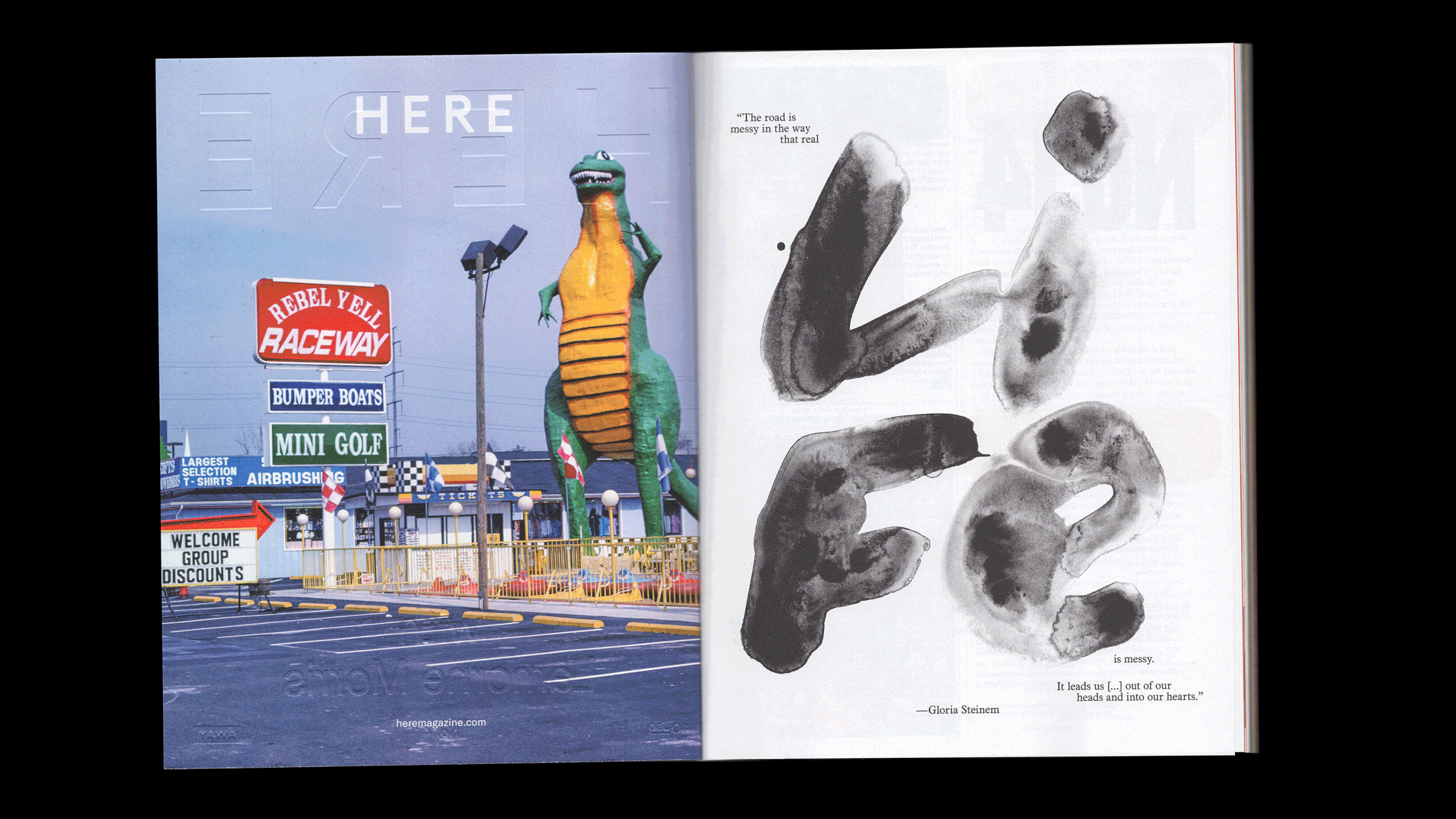 A road trip-themed issue featuring the USPS, a brief history of protests, the best drives around the world, roadkill eulogies, Lamorne Morris, and more. This issue was Here's last: The magazine folded on October 22nd, 2020.